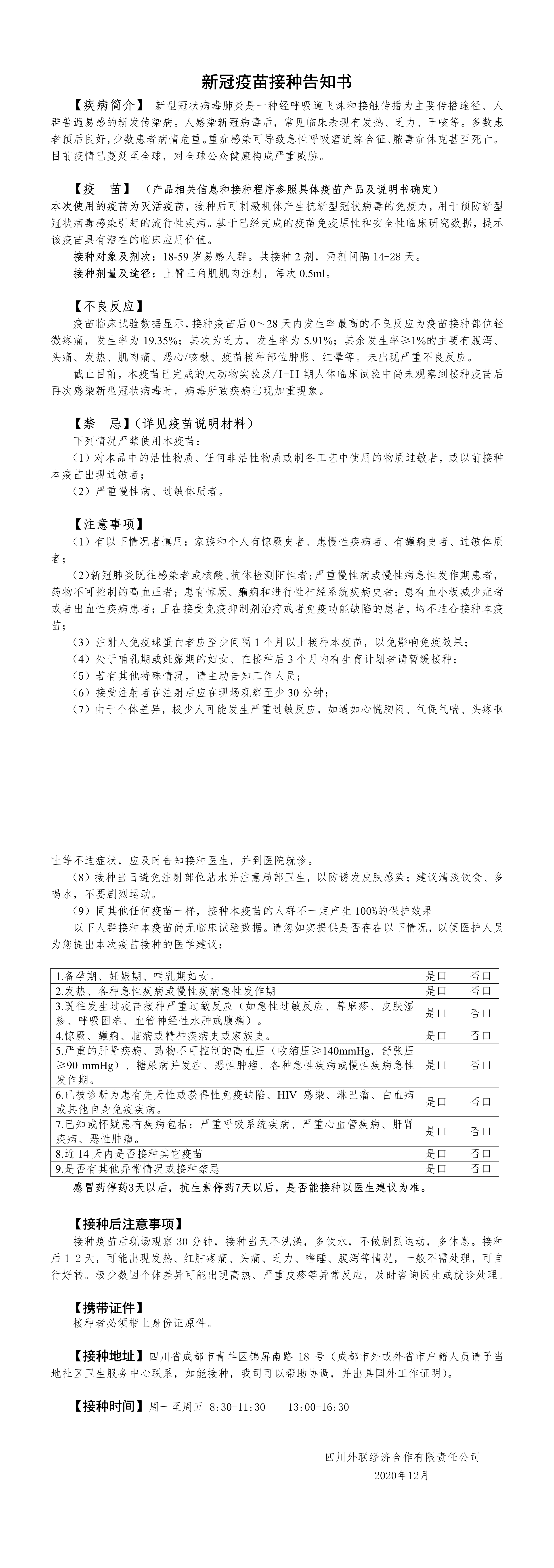 新冠疫苗接種告知書