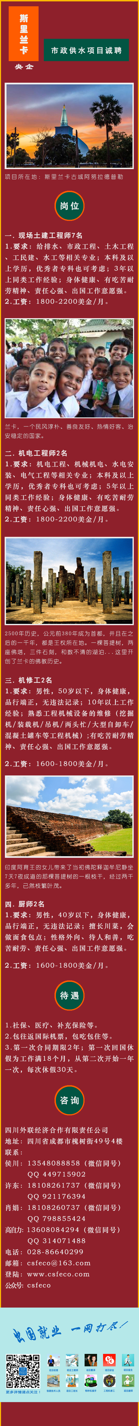 央企斯里蘭卡市政供水項(xiàng)目招聘