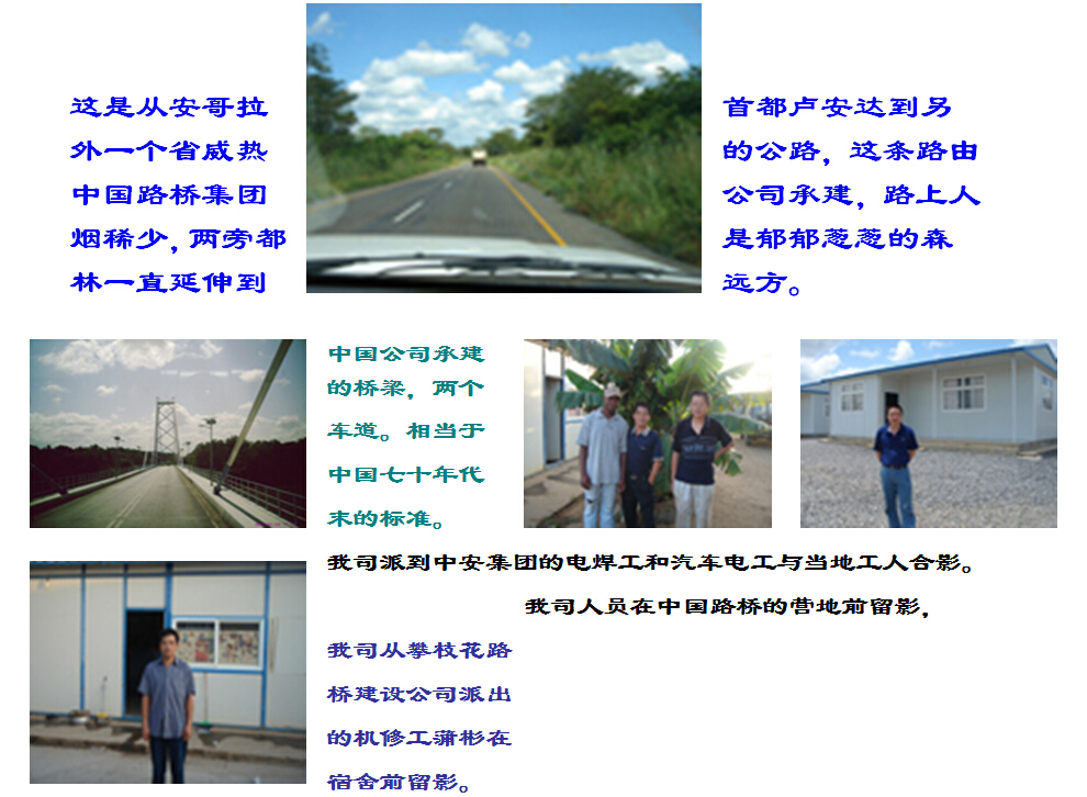 目前中國路橋工程有限公司、中安工業(yè)設(shè)備安裝集團有限公司、西南市政工程設(shè)計院、香港中國基金公司等中國公司在安哥拉發(fā)展勢頭強勁。