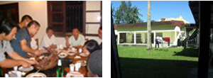 加蓬副總理兼外長(zhǎng)(舉行特別舉行酒會(huì)宴請(qǐng)中方管理人員感謝他們對(duì)加蓬的經(jīng)濟(jì)建設(shè)所作出的貢獻(xiàn)!營(yíng)地的外部環(huán)境,空氣清新,草木蔥蔥。中方管理人員所住的營(yíng)地,食宿條件都不錯(cuò),廚師還是我們四川派的。項(xiàng)目上還聘請(qǐng)了當(dāng)?shù)貑T工,中外員工之間建立了不錯(cuò)的交情,體現(xiàn)了中非的傳統(tǒng)友誼。在異國(guó)他鄉(xiāng)喝著啤酒吃著烤全羊,享受著周末的快樂(lè)時(shí)光!