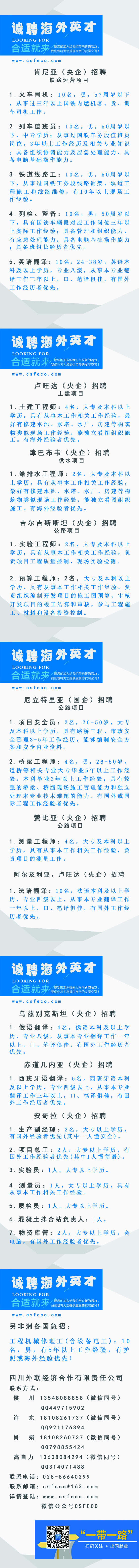 亞非歐海外央企2017秋季招聘之二110人