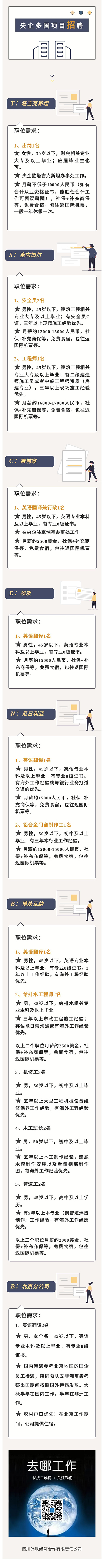 亞非多國央企多國項目招聘18人